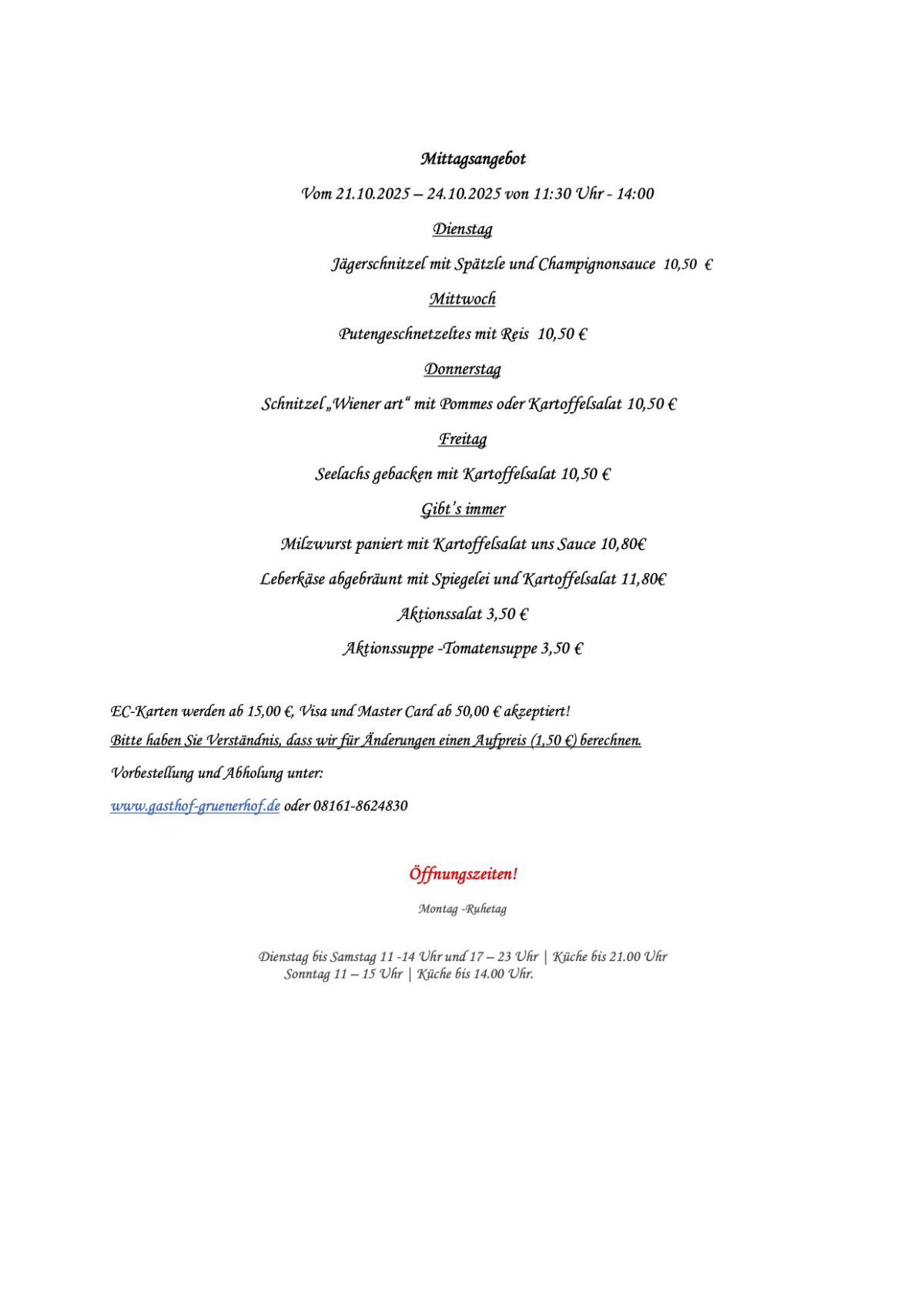 Sonntag / Feiertage: 11.00 -15.00 Uhr